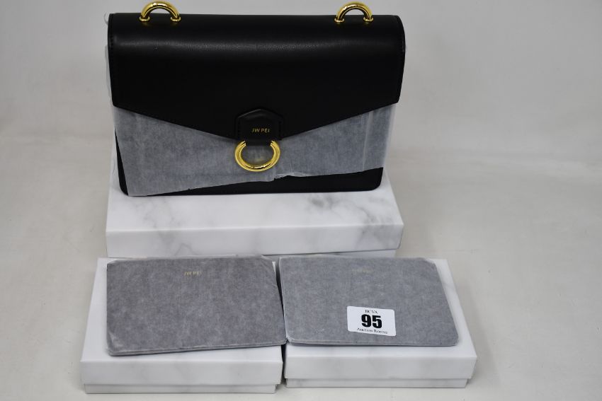 An as new JW Pei Envelope crossbody bag in black (RRP £45) and four JW Pei Quinn leather zipped card holders (RRP £19 each).