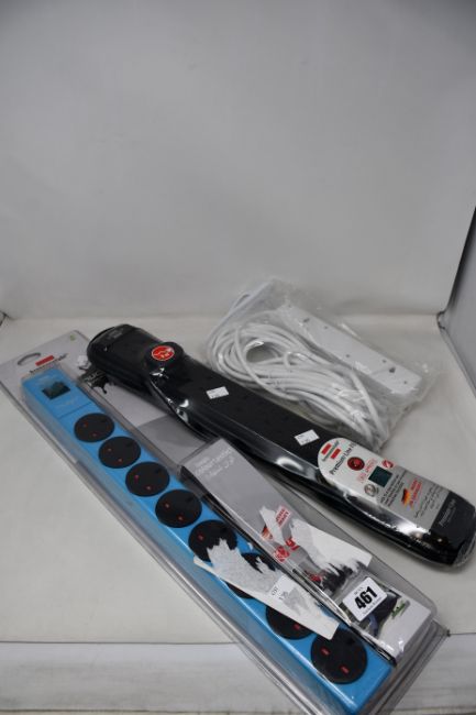 Two as new Brennenstuhl Hugo eight socket with two metre extension lead, one as new Brennenstuhl premium line FB six socket with five metre extension lead, ten as new Pro-Elec four socket with ten metre extension lead.