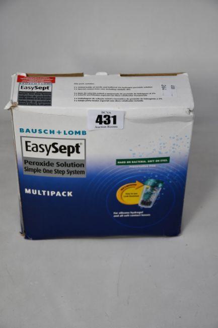 Six boxed Bausch + Lomb EasySept Multipacks for contact lens treatment (Some damage to outer boxes, may have missing items).