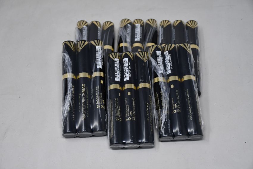 Eighteen 7.2ml sealed as new Max Factor MasterPieceMax High Volume and Definition Mascara in Black/Brown.