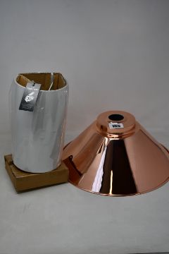 A collection of Dar lighting products to include: one Dauphine Pendent light with copper finish and two Tico Touch Lamps in satin chrome.