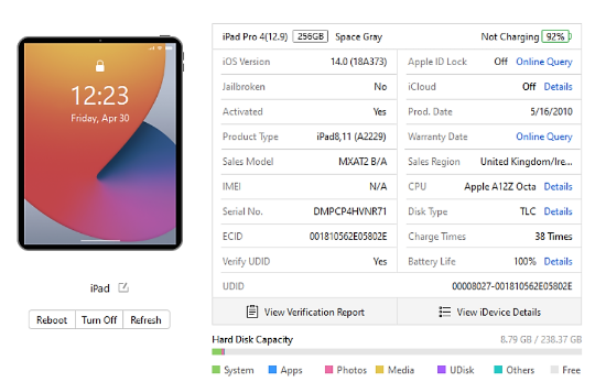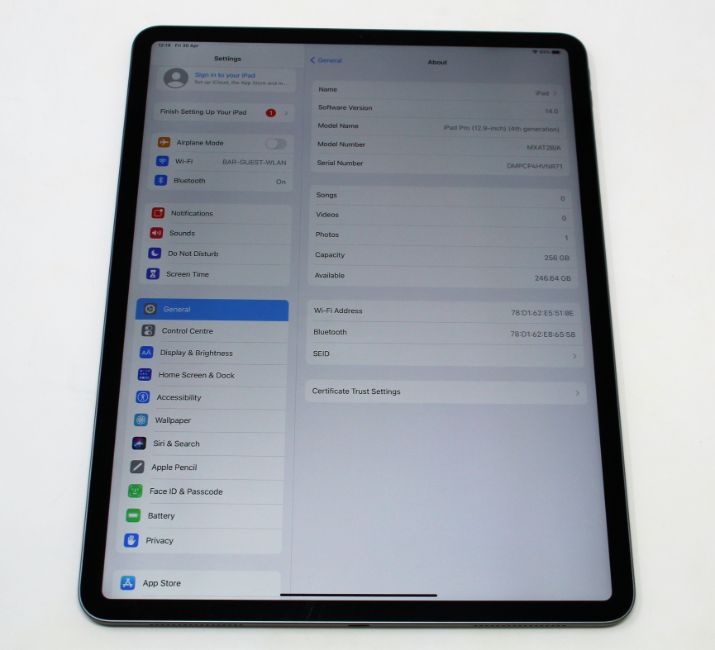 SOLD FOR PARTS: A pre-owned Apple iPad Pro 4 12.9" A2229 256GB in Space Grey (Activation lock clear) (Sold for parts only. Apple serial number lookup states 'This is a serial number for a product that has been replaced'. Some scratches to screen glass. Item sold as seen) (Checkmend report ID: : CM16946588-E48EC).