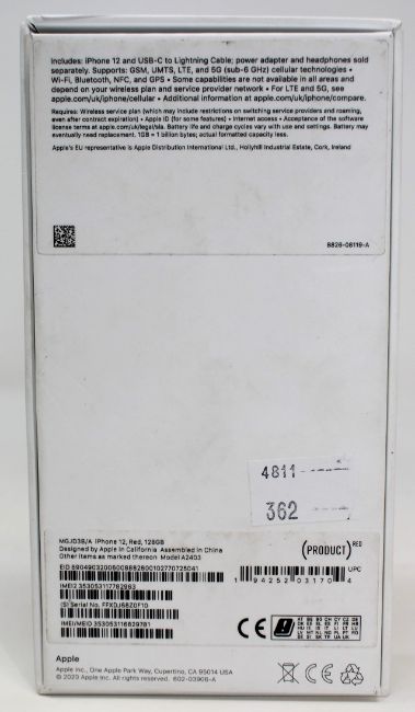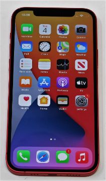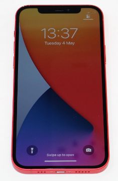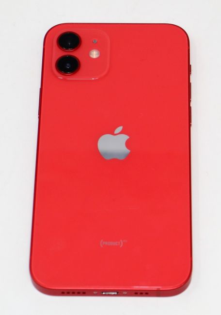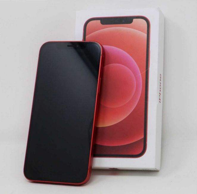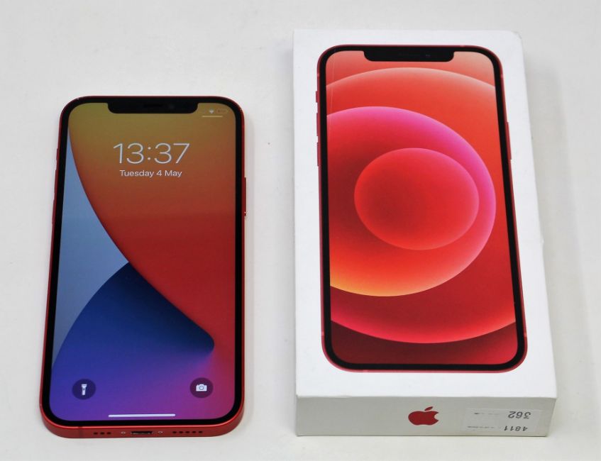 A pre-owned Apple iPhone 12 (Global/A2403) 128GB in Red (FRP clear. Some scratches to screen glass and cosmetic damage to casing edges) (Checkmend report ID: CM16931423-52EB7) (Box and lightning cable included).