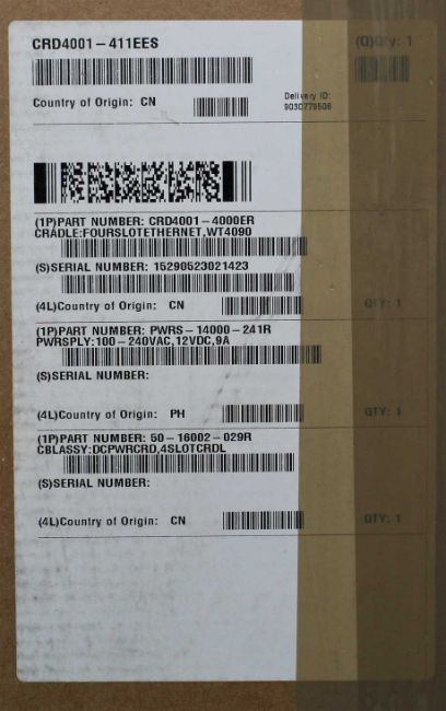 A boxed as new Zebra Symbol CRD4001-411EES Four Slot Ethernet Cradle Kit For WT4000 Series Barcode Scanners (Boxes sealed, some damage to box).