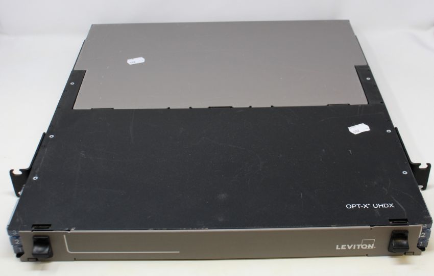 A pre-owned Leviton OPT-X UHDX 1RU Fiber Enclosure (Untested, sold as seen).