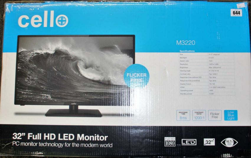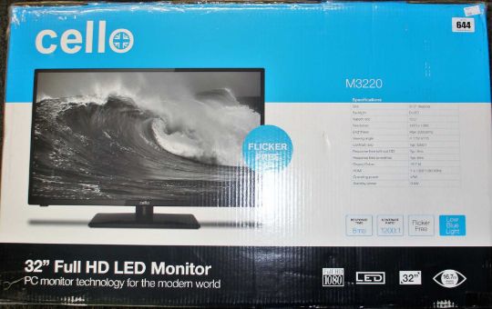 COLLECTION ONLY: A boxed as new Cello M3220 32" Full HD LED Monitor (Box opened, damaged box).