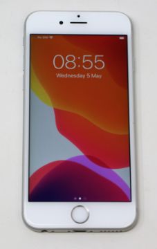 A pre-owned Apple iPhone 6s (Global/A1688) 64GB in Silver (iCloud Activation clear) (Checkmend report ID: CM16968005-E0644).