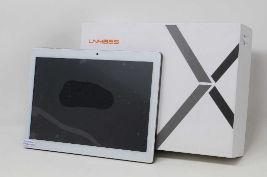 A pre-owned LNMBBS X30 4G LTE 128GB 10.1" Android Tablet in Silver (FRP Clear) (Box and accessories included, UK plug adaptor required).