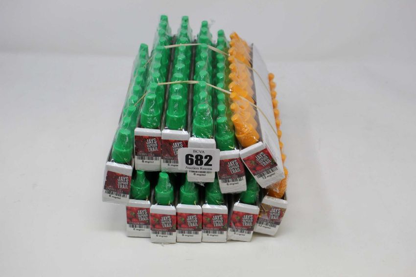 Ten packs of ten 10ml/6mg vape liquid in cherry cola and strawberry flavours along with two packs of ten 10ml/12mg in strawberry and gold & silver flavours (Over 18s only).