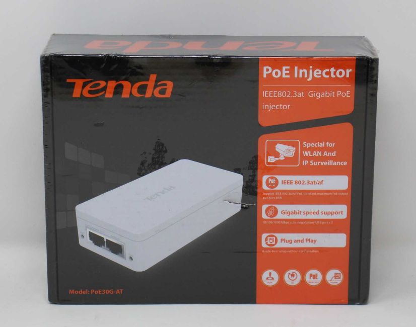 A boxed as new Tenda IEEE802.3at PoE Injector (Model: PoE30G-ATv2.0) (Box sealed).