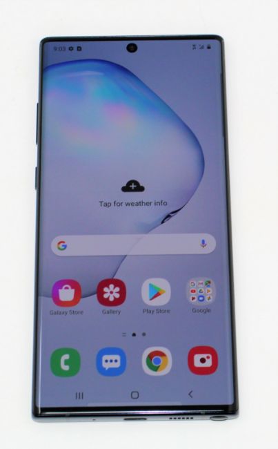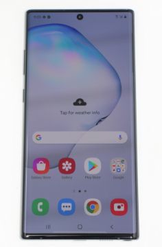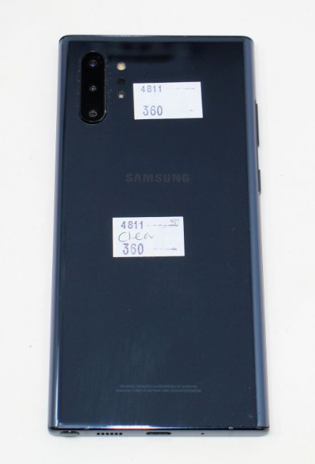 A pre-owned Samsung Galaxy Note 10+ SM-N975U 256GB in Black (FRP clear) (Checkmend report ID: CM16922699-E8319).