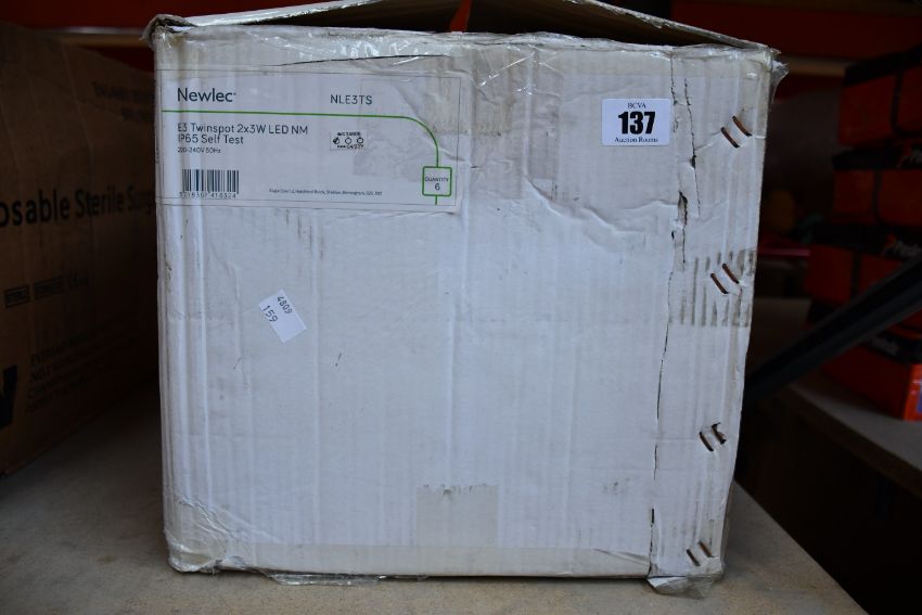 Six boxed as new Newlec NLE3TS LED Twin Spot Emergency Light Fittings (2x3W).