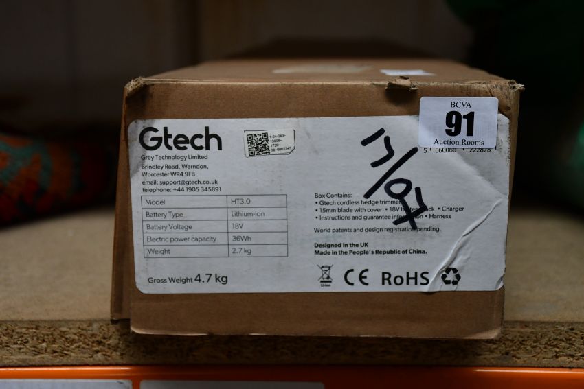 A boxed Gtech HT3.0 Cordless Hedge Trimmer.