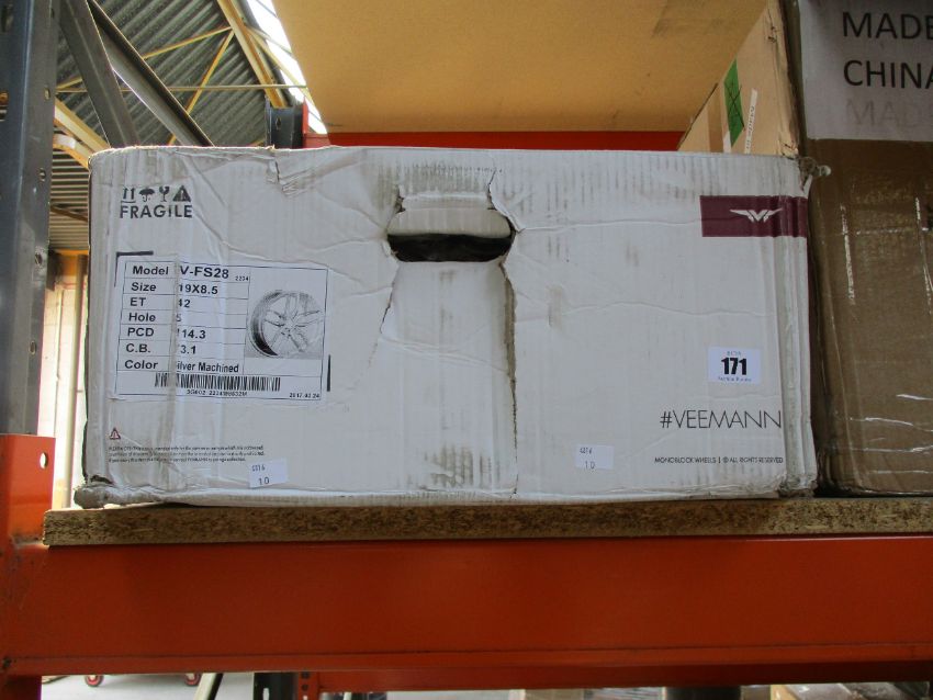 An as new Veemann V-FS28 19 x 8.5 silver machined alloy wheel.
