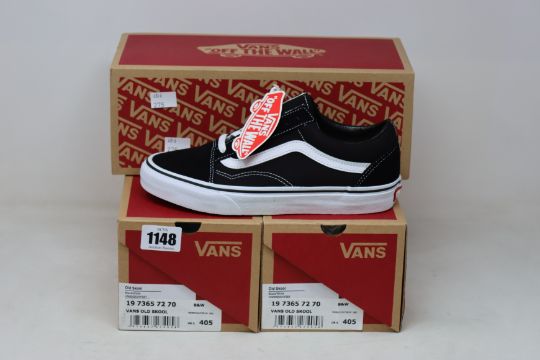 Three pairs of as new Vans Old Skool black and white canvas sneakers (UK 5 - RRP £60 each).