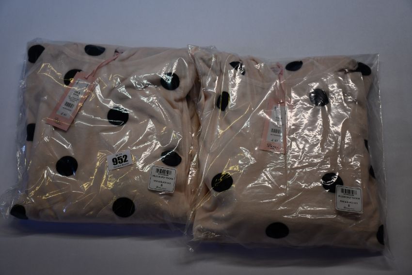 Five as new Boux Avenue pink and black mix velour spot twosie's (All size 8 - RRP £40 each).