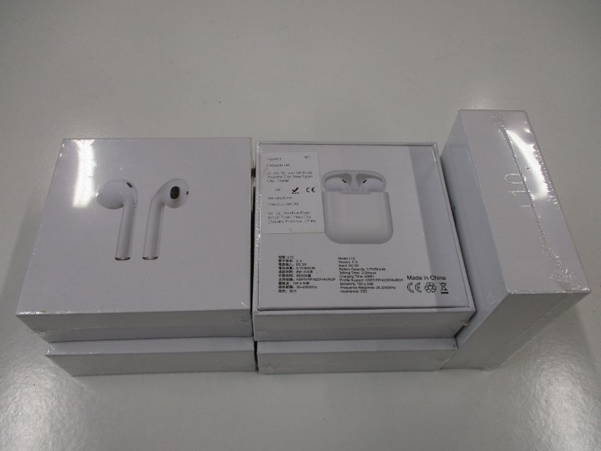 Five boxed and sealed as new i10 wireless ear pods, version 5.0, DC 5V, talk time 2 - 3 hours.