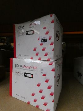 One boxed Equia Forte HT bulk fill glass hybrid restorative system.