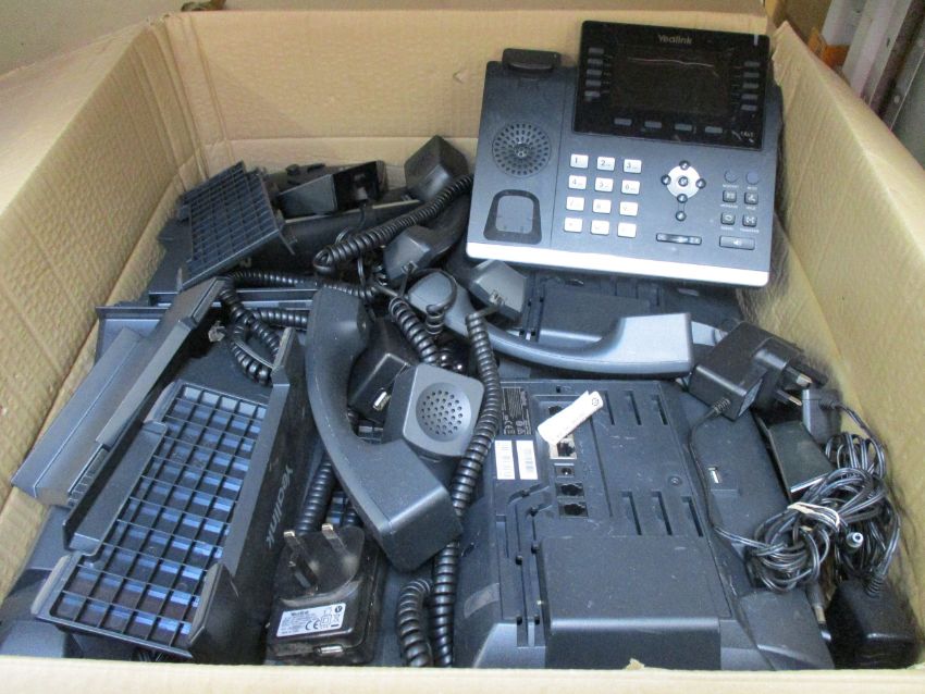 A box of pre-owned YeaLink IP Phones; 4 x T48S , 4 x T46S, 5 x HD W56H (All untested, sold as see