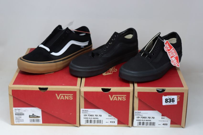Three pairs of as new Vans Old Skool sneakers (UK 5, 6, 7).