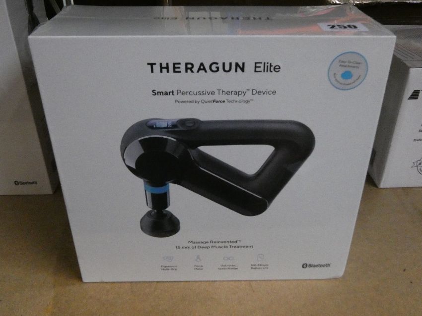 A boxed as new Theragun Elite smart deep tissue massage device.