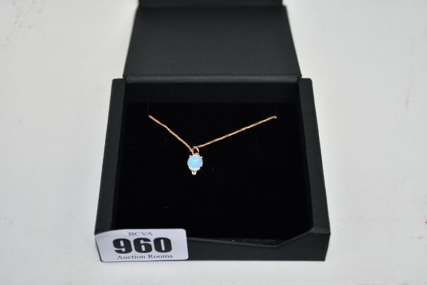 A boxed WWake (Medium sized) opal and sapphire pendant necklace with 16"/18" 14k yellow gold chain (RRP $910).