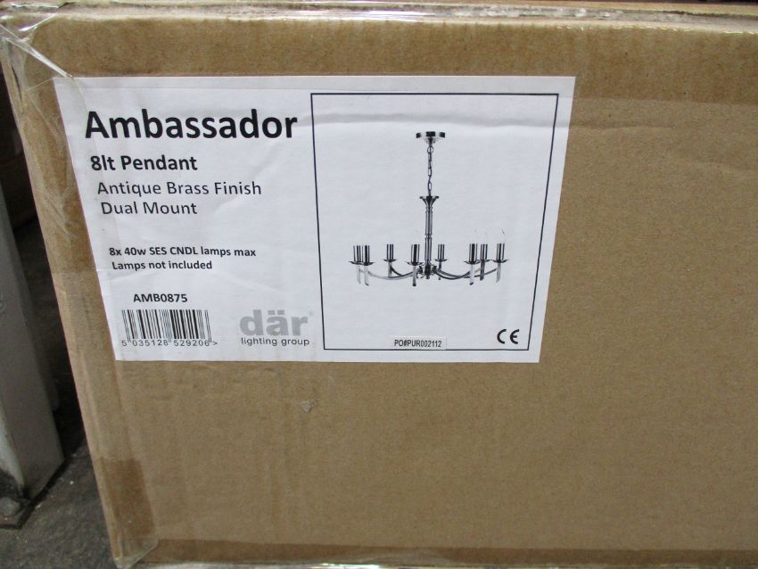 A boxed as new Dar Ambassador eight branch dual mount lighting.