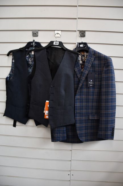Two Ben Sherman check suit jackets with retro speaker lining (40 short and 39 regular - RRP £119 each) and two Ben Sherman waistcoats (36/38 regular - RRP £50-55), all as new.