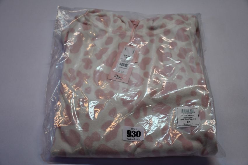 Five as new Boux Avenue pink and white mix velour animal shortie sets (All Size 12 - RRP £35 each).