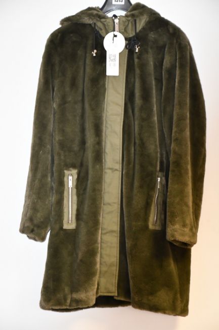 An as new Oui faux fur hooded coat in olive (Size 42 - RRP £399).