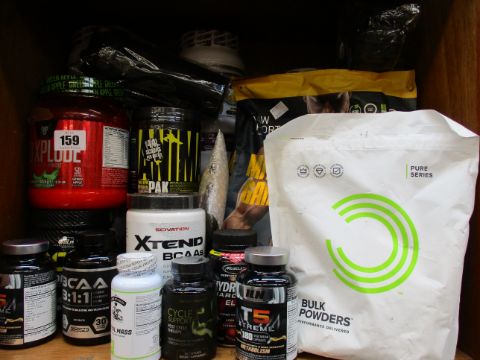 A quantity of sport nutrition products to include DY Shadowhey Isolate (Chocolate, 2kg, 06/21), Raw Sport Mass Gainer (Vanilla, 2.5kg, 31/07/21) and EHP Labs Oxy Whey (Chocolate, 27 servings, 15/09/22) (Approximately 20 items).