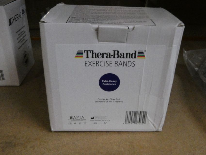 A boxed Thera-Band extra heavy resistance exercise band roll (45.7 metre).