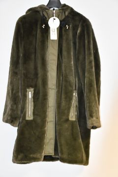 An as new Oui faux fur hooded coat in olive (Size 40 - RRP £399).