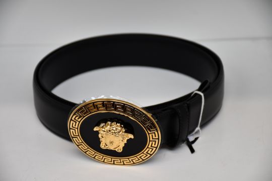 An as new Versace oval medallion leather belt (Size 90 - RRP £350).