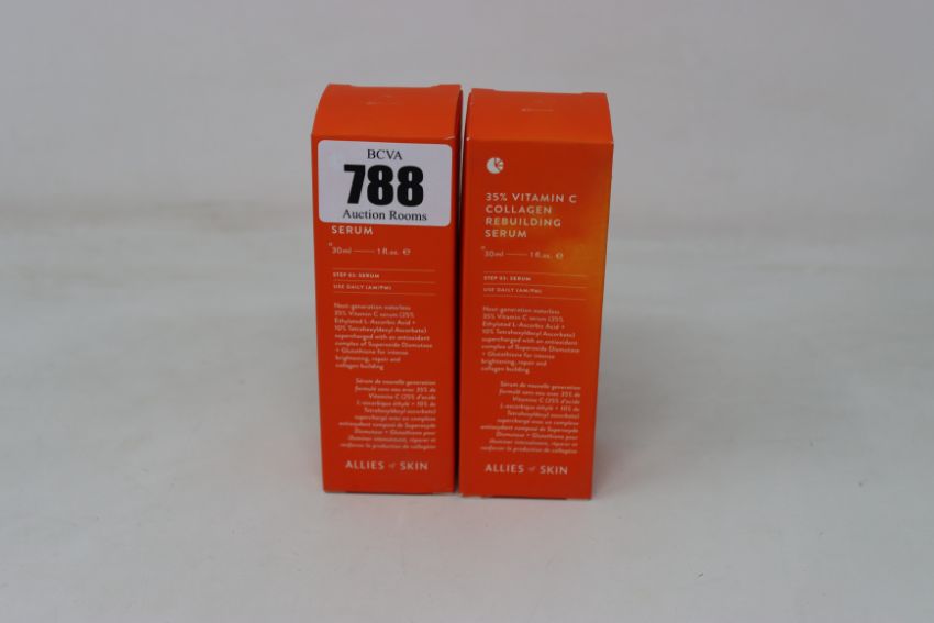 Two boxed as new Allies of Skin 35% Vitamin C Collagen Rebuilding Serum (30ml).