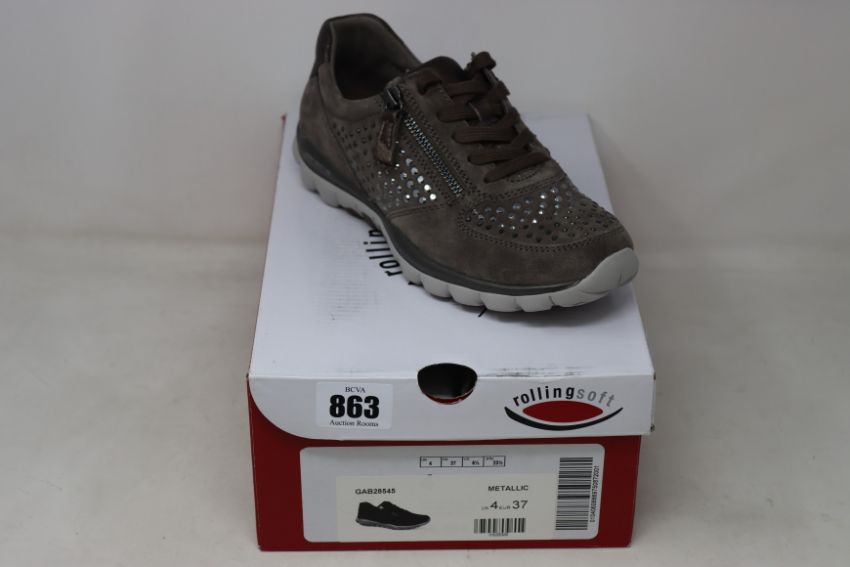 A pair of as new Rolling Soft Gab28545 metallic trainers (UK 4).