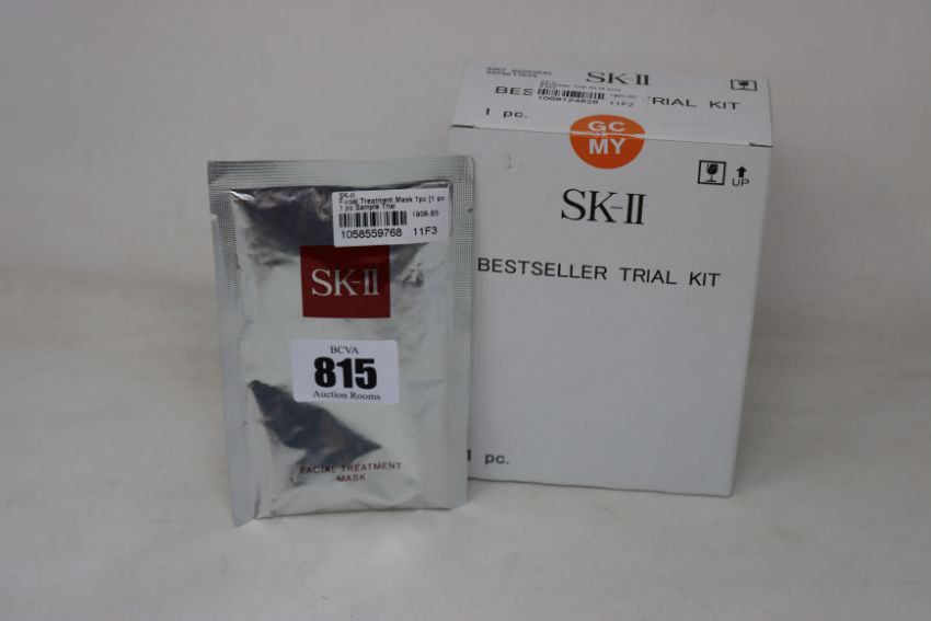 An as new SK-II four piece travel set and one facial treatment mask.