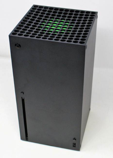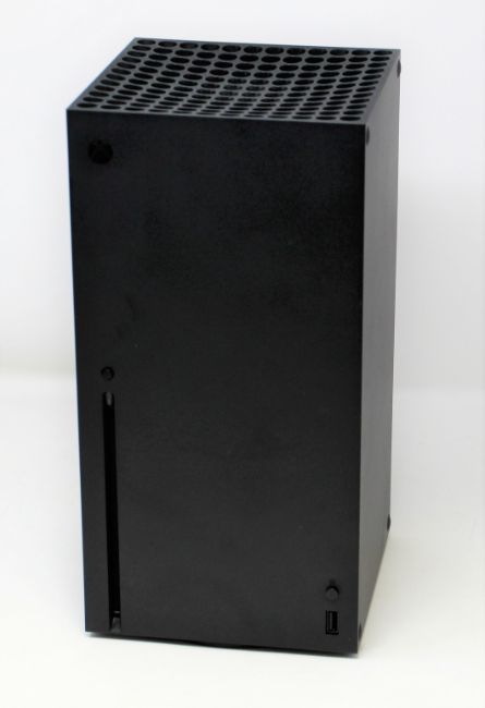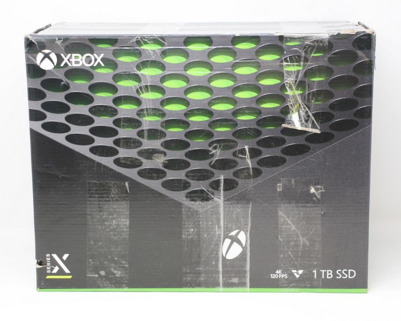 A pre-owned Microsoft Xbox Series X 1TB Video Game Console in Black (Powers on, not tested further. Sold as seen) (SKU: RRT-00007 Model: 1882 Serial: 149611203817) (Boxed, box damaged. Console only, no cables, controllers or other items included) (Wiped and reset)/.