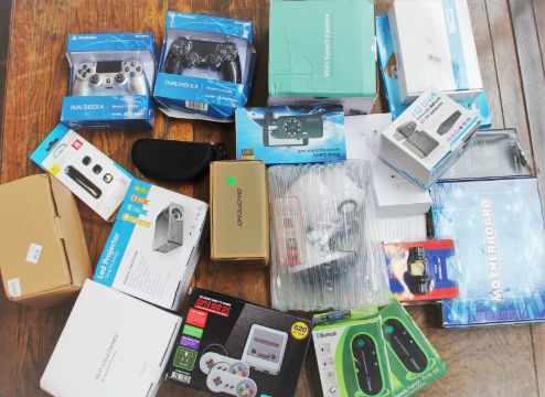 COLLECTION ONLY: A box of assorted as new small electrical items and accessories.