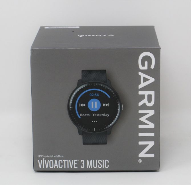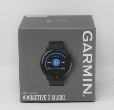 A boxed as new Garmin Vivoactive 3 Music Fitness Smartwatch in Black (Box sealed).