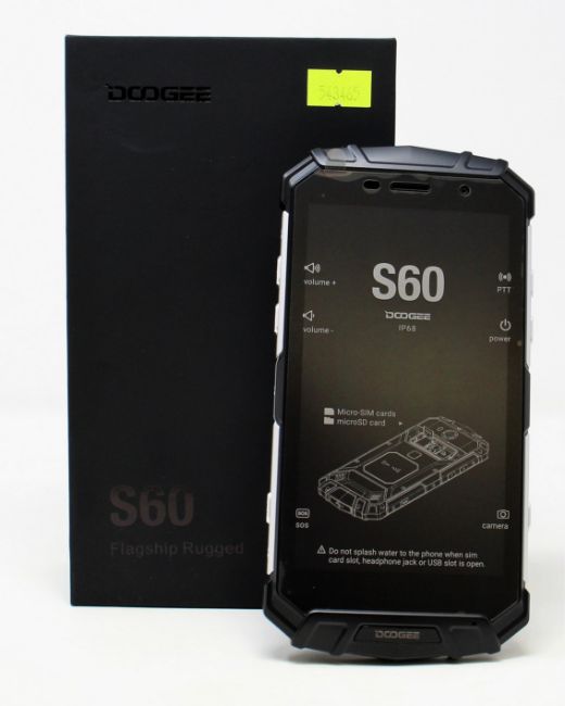 A boxed as new Doogee S60 64GB Rugged Smartphone in Moonlight Silver (Box opened, UK plug adaptor required).