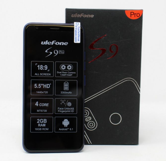 A boxed as new Ulefone S9 Pro 16GB Smartphone in Blue (Box opened, UK plug adaptor required).