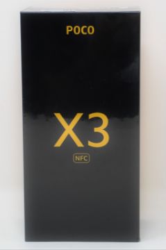 A boxed as new Xiaomi Poco X3 NFC 128GB Smartphone in Shadow Gray (UK plug adaptor required) (Box opened).