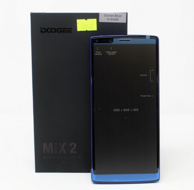 A boxed as new Doogee Mix 2 64GB Smartphone in Ocean Blue (Box opened, UK plug adaptor required).