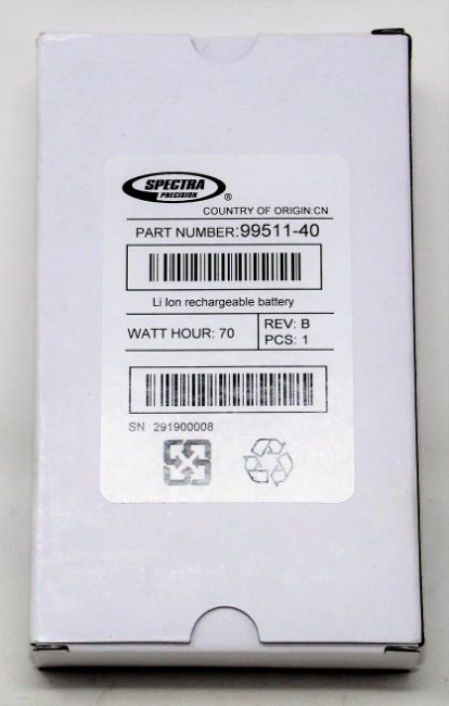 A boxed as new Spectra 99511-40 Rechargeable Lithium-Ion Battery for Focus 35 Robotic Total Station.