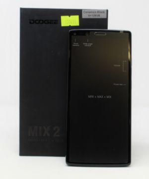 A boxed as new Doogee Mix 2 128GB Smartphone in Ceramic Black (Box opened, UK plug adaptor required).