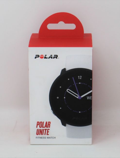 A boxed as new Polar Unite Fitness Watch in White (Size Small - Large) (Box sealed).