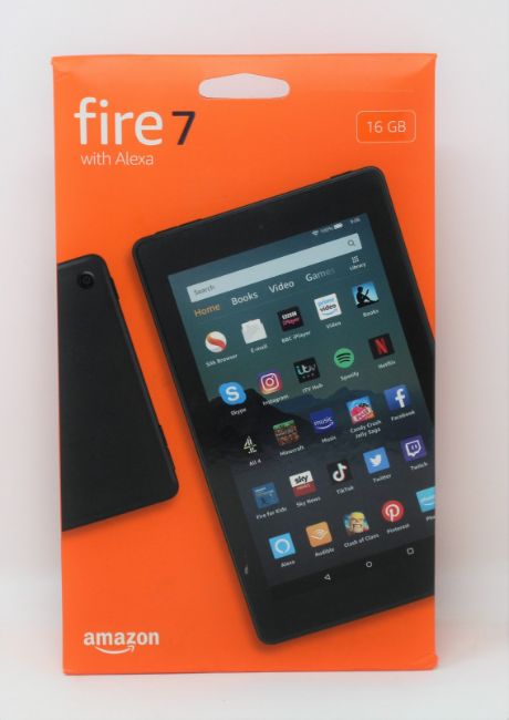A boxed as new Amazon Fire 7 16GB Tablet in Black (Box sealed, slight damage to box).