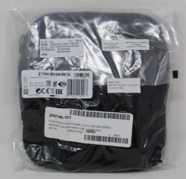 An as new Plantronics Blackwire C3215 USB-A Monaural Headset with storage pouch (P/N: 209746-101) (Packaging sealed).