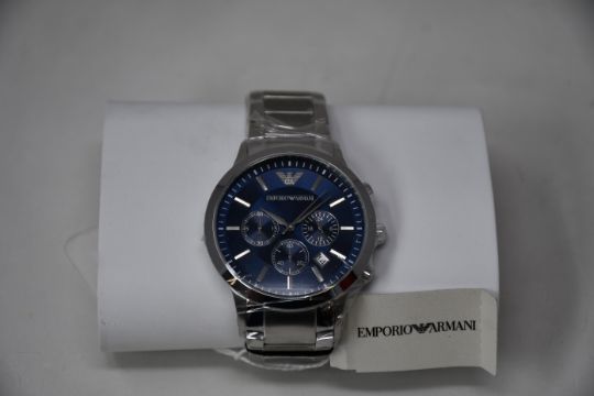 A men's as new Emporio Armani AR2448 stainless steel blue dial chronograph watch (No box).